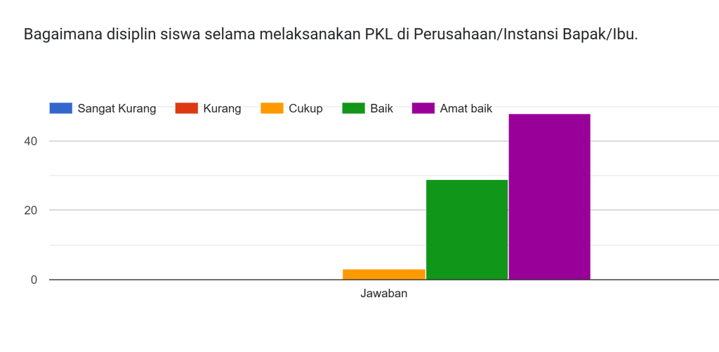 Hasil dari kuesioner ini diharapkan dapat menjadi bahan evaluasi bagi sekolah dalam meningkatkan kualitas pembelajaran, penyelarasan kurikulum dengan kebutuhan industri, serta perbaikan pelaksanaan program PKL di masa mendatang. Selain itu, data yang diperoleh juga menjadi dasar untuk memperkuat kerja sama antara SMKN 1 Pekanbaru dengan DUDI guna menghasilkan lulusan yang kompeten, berkarakter, dan siap memasuki dunia kerja.